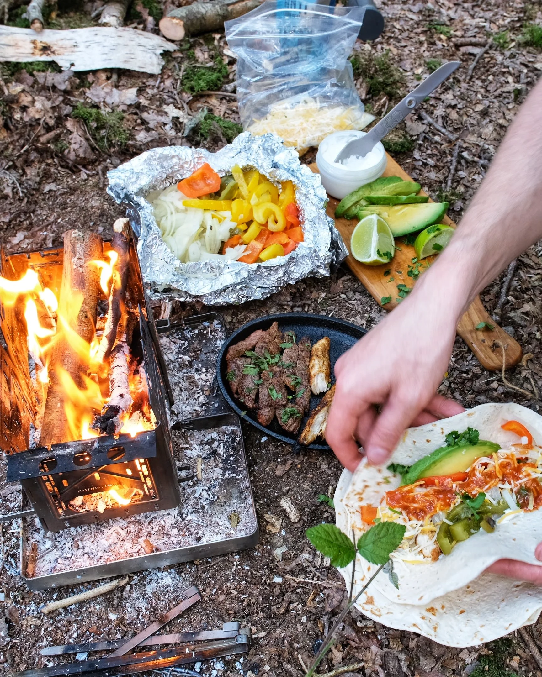 Below you will find some of the recipes for the meals I prepare on my camping trips, the gear I’m cooking with, and a few tips on how I pack things so they stay fresh for the 8-12 hours before it’s time to settle down at camp and make dinner.